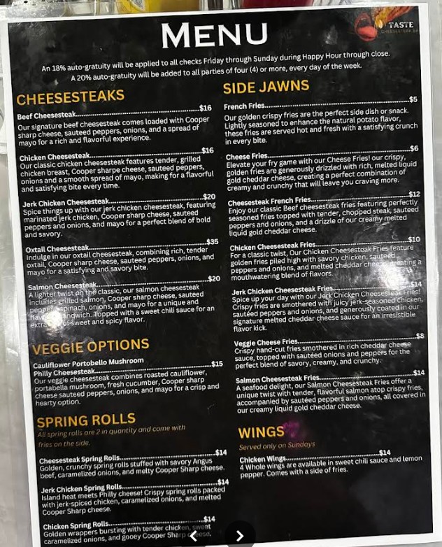 This SEO content is designed to target "Taste Cheesesteak Bar Restaurant menu" while focusing on the quality of food and experience at the restaurant. Let me know if you need any adjustments!